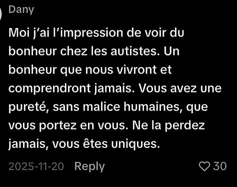 À mon avis, c’est un cas typique d’une femme située à l’intersection entre le privilège de beauté et l’autisme, où le fait d’être conventionnellement jolie mène souvent à recevoir une forme d’attention sexuelle et misogyne non-sollicitée qui éclipse les messages clés qu’elle souhaite transmettre à travers son contenu.